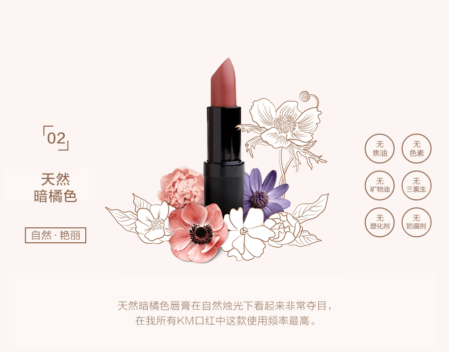 Karen Murrell 2号 纯天然植物持久保湿 新西兰KM有机口红 天然暗橘色 4g